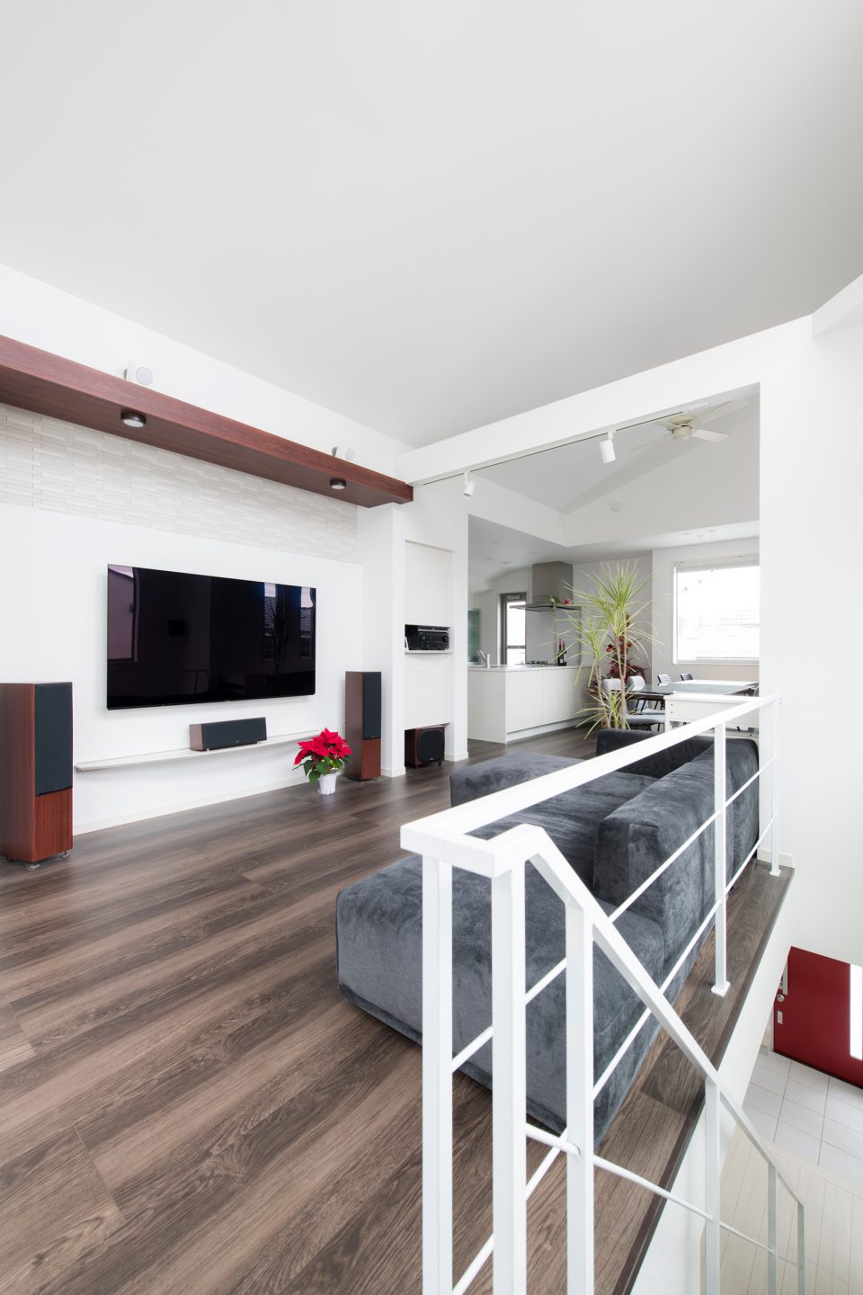 7つのスピーカーシステムをレイアウトした片流れの住まい