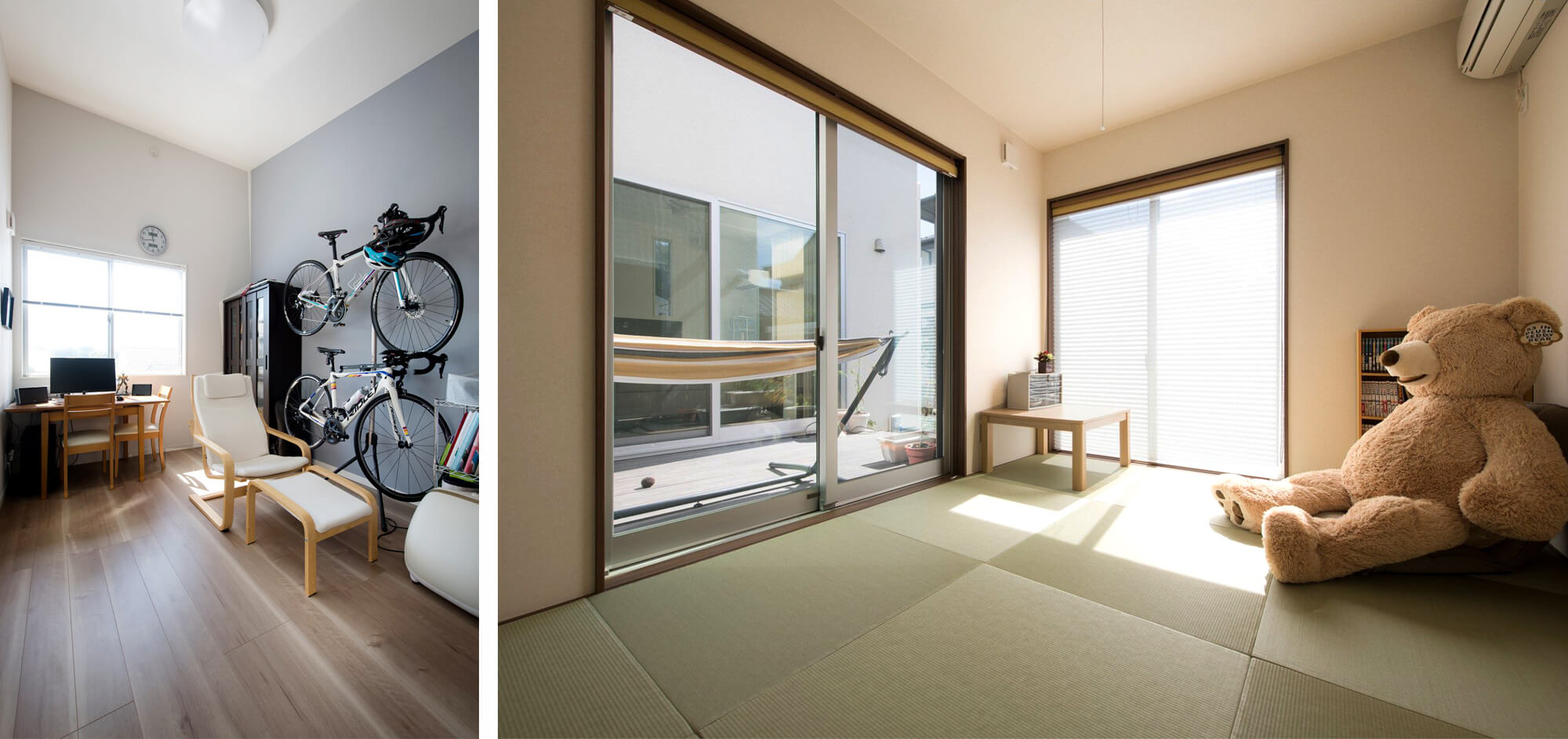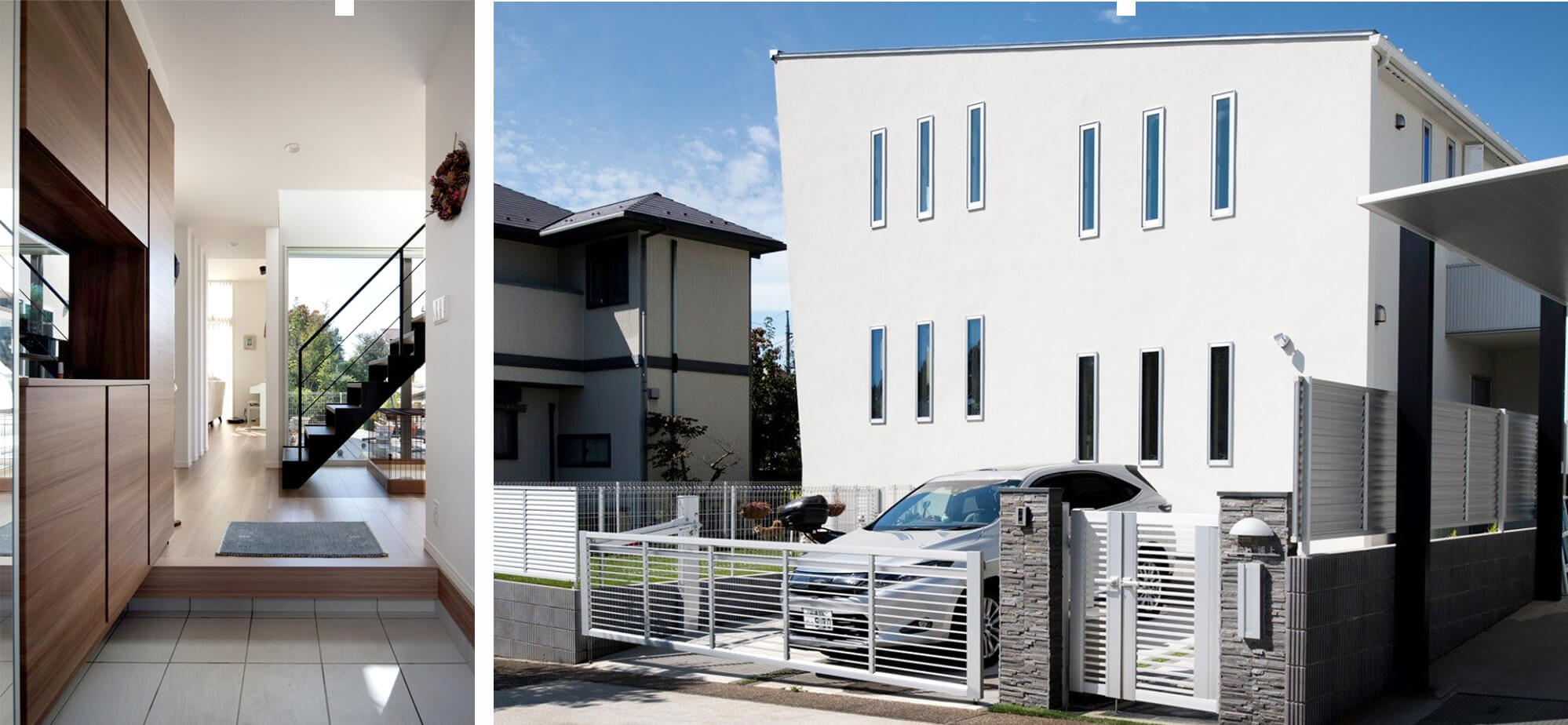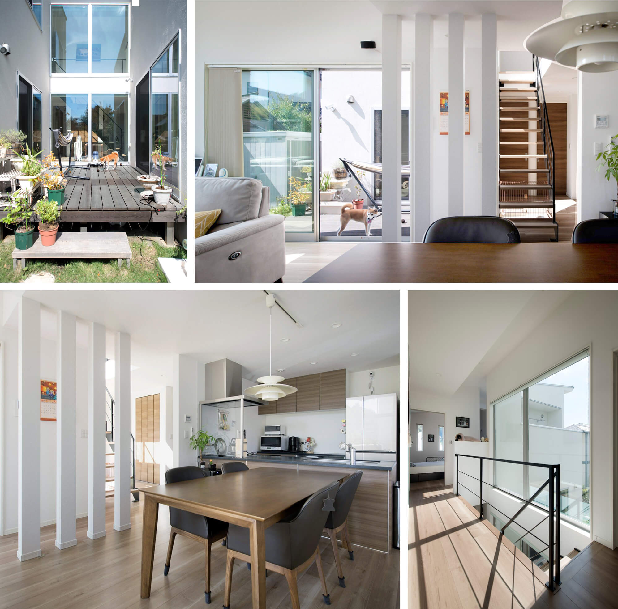 シンプルながら均整が取れたファサード。中庭に面した大きな窓からは部屋全体に光が差し込みます。家族だけでなく愛犬も喜ぶ住まいが完成しました。