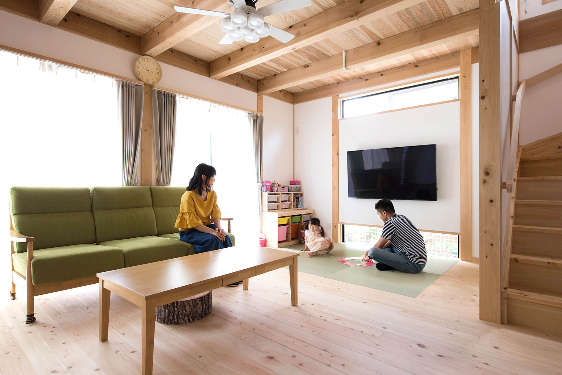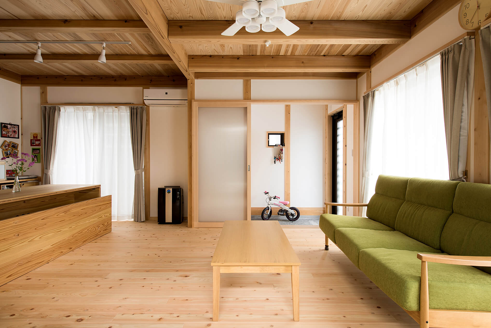 カリフォルニア風の家|アカシアの無垢床と梁が映える住まい
