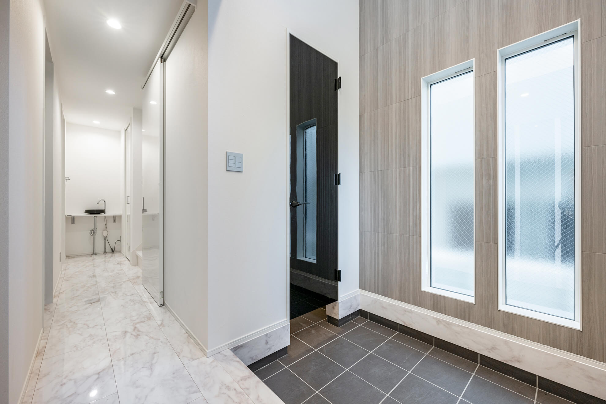 写真|真っすぐ伸びた廊下の先には、開放感のある洗面台