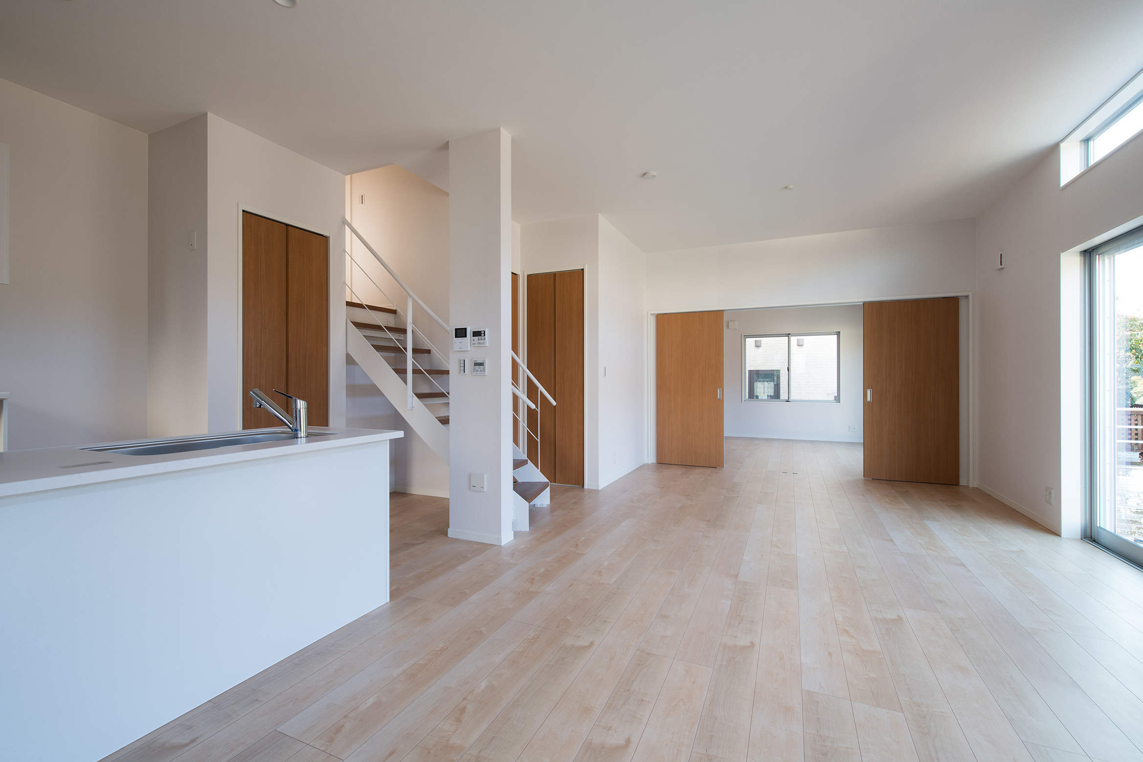 カリフォルニア風の家|アカシアの無垢床と梁が映える住まい