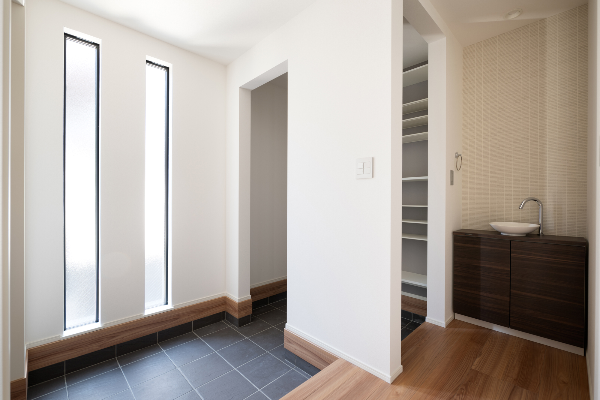 まるで箱根の高級旅館のようなロケーションを感じるシンプルモダンの家です。