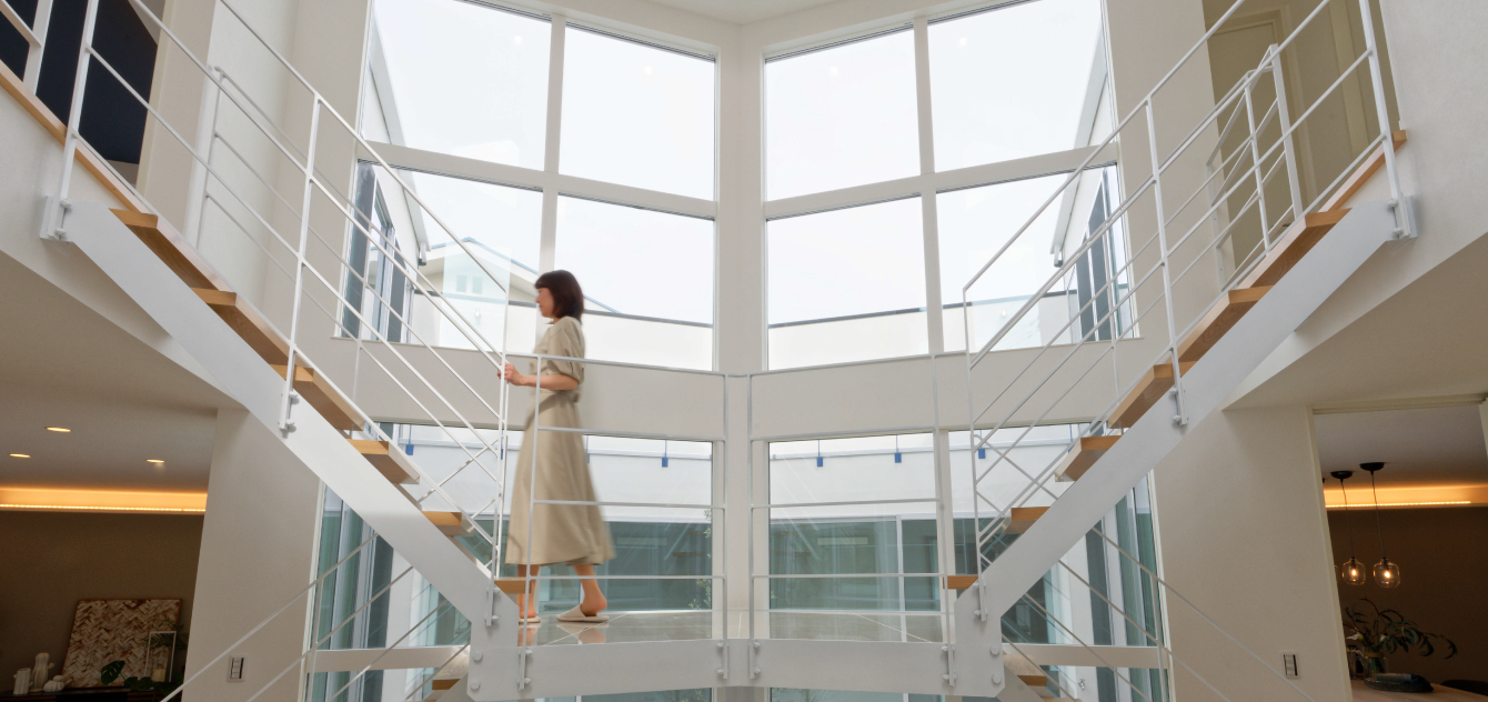 中庭から光と風が差し込む、空を招き入れた住宅。