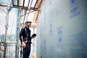 点検スタッフが建物の点検を行います。