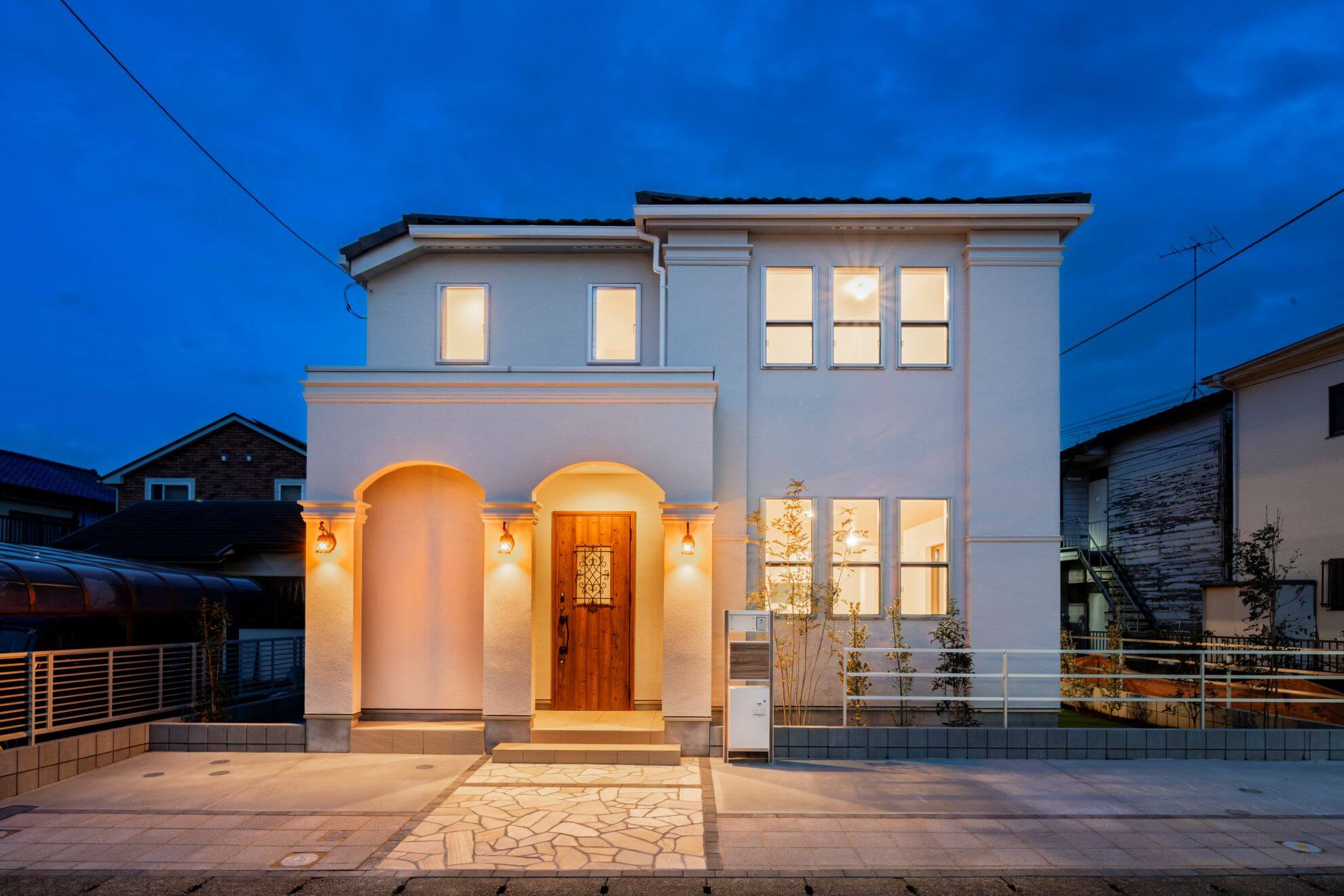 白壁に映えるやわらかな陽射し、風は通り抜けるたびに、家全体にやすらぎを運んでくる。この南欧風の住まいは、見た目の美しさだけでなく、機能性と快適性を追求した、心まで整う空間。リビングは全開放の設計で、内と外を緩やかにつなぎ、テラスからは空と緑が広がる。