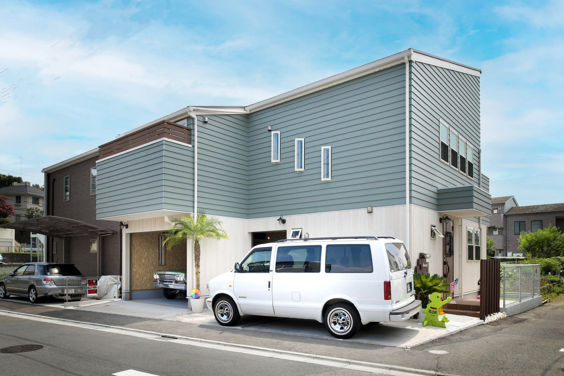 趣味を楽しむ家|ハワイアンテイストのガレージのある住まい
