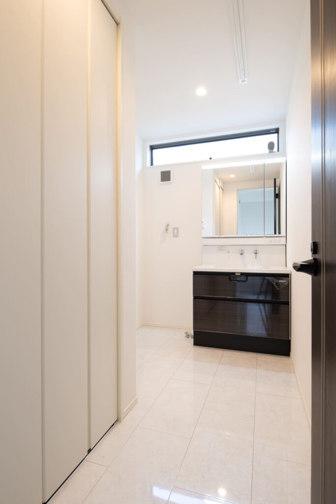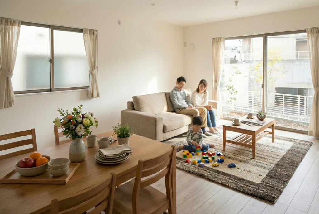 家族が集まるリビングダイニングの快適性はもちろん、奥様目線の家事が楽な動線設計からご主人様の書斎スペース、子供部屋まで「都市部での暮らしをリアルにイメージできる家」を建築しました。
