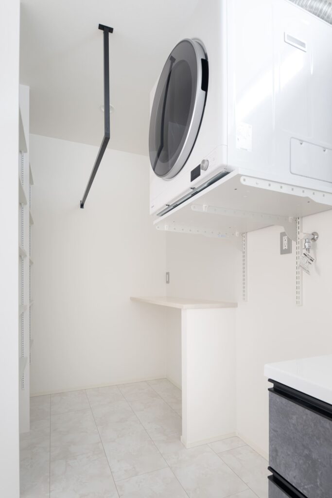 家族が集まる広々LDKの快適性はもちろん、奥様目線の家事が楽な動線設計から、ガス衣類乾燥機「乾太くん」が標準装備のランドリールームまで「都市部での快適な暮らしをリアルにイメージできる家」を建築しました。