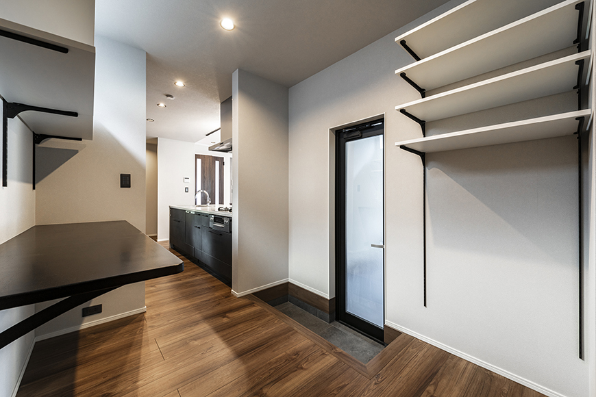 ビルトインガレージからパントリーへつながるストレスフリーな動線。買い物を運び入れるのも玄関に回らずに直接ものを運ぶことができます。このような動線やアイデアで建築提案を致しております。
