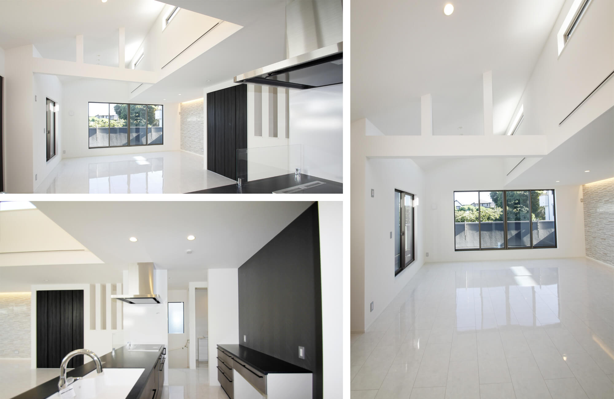 白とグレーを基調としたシンプルモダンな外観と室内、実際にご覧いただきご体感ください。