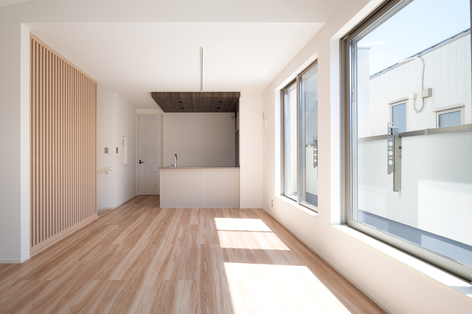 家族が集まるリビングダイニングの快適性はもちろん、奥様目線の家事が楽な動線設計からご主人様の書斎スペース、子供部屋まで「都市部での暮らしをリアルにイメージできる家」を建築しました。