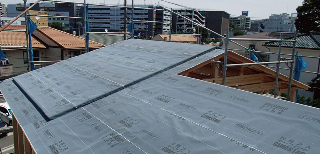 屋根には強度の高い防水シートを、壁には透湿性の高い防水シートを張り巡らせ、雨や風から家を守ります。サッシ廻りにも防水シートを張り巡らせることが、住まいの腐食を防ぎ、耐久性を高めます。