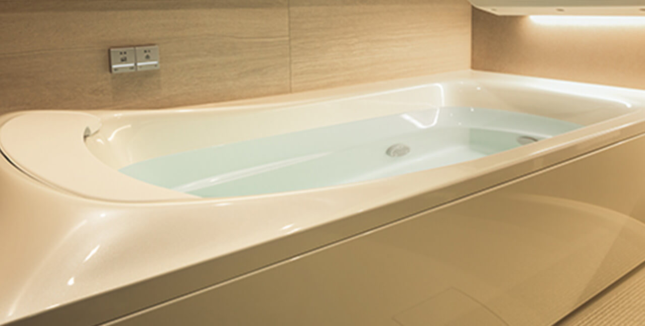 ゆりかごに包まれるような新感覚美しいカーブと全身を包み込むような入浴感が特長。