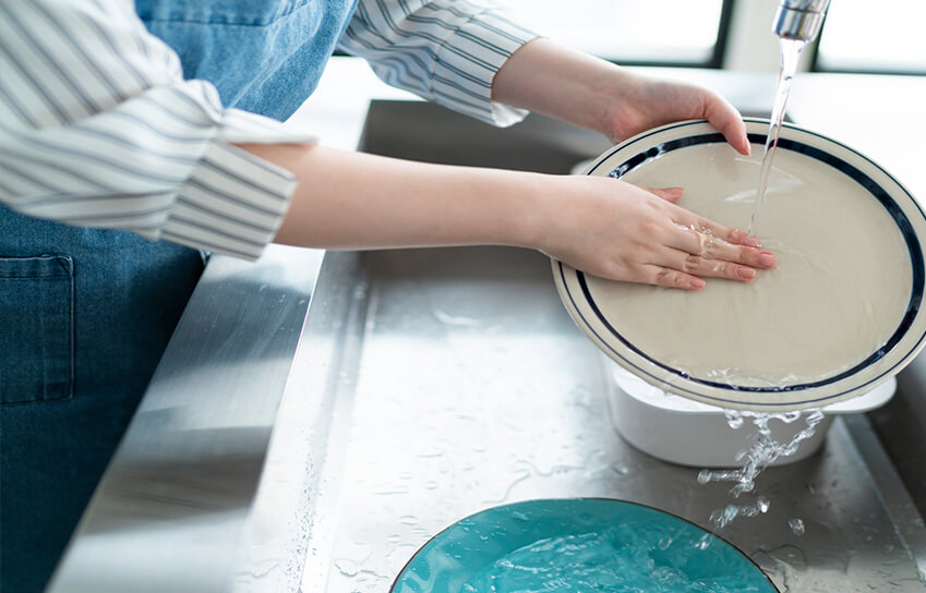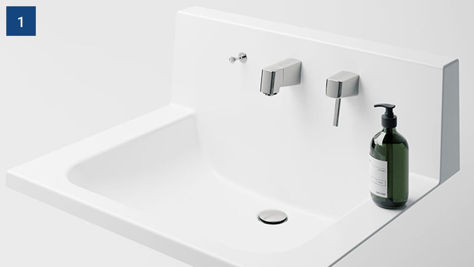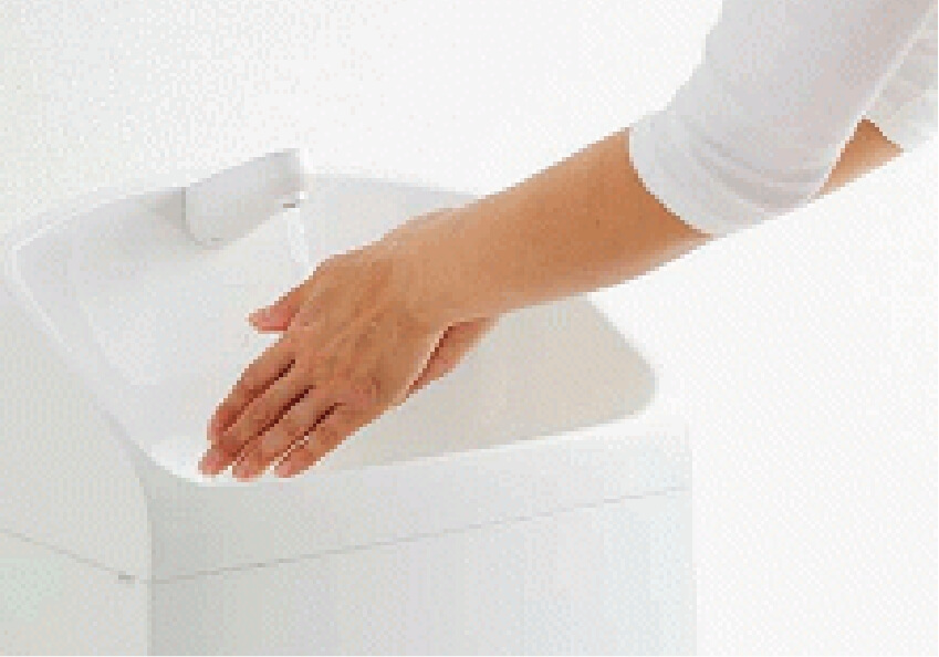 しっかり手を洗っても、手が当たることはありません。水ハネもしにくく、いつでも気持ちよく洗えます。