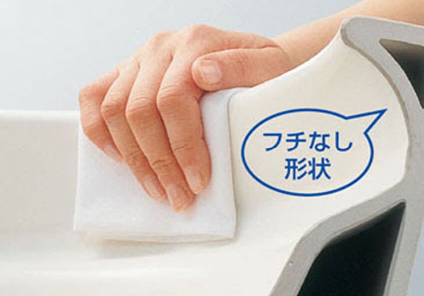 お掃除のしやすさを究めたTOTO独自のデザイン。奥までぐるーっとフチがないから、サッとひと拭き、お掃除ラクラク。