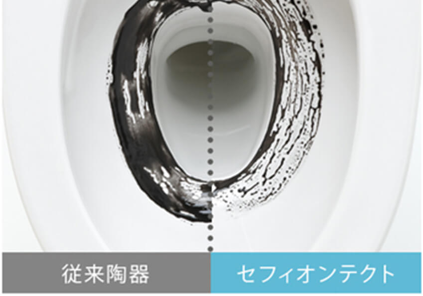 汚れがつきにくく、落ちやすいTOTO独自の技術です。少ない水で効率よく洗浄できます。
