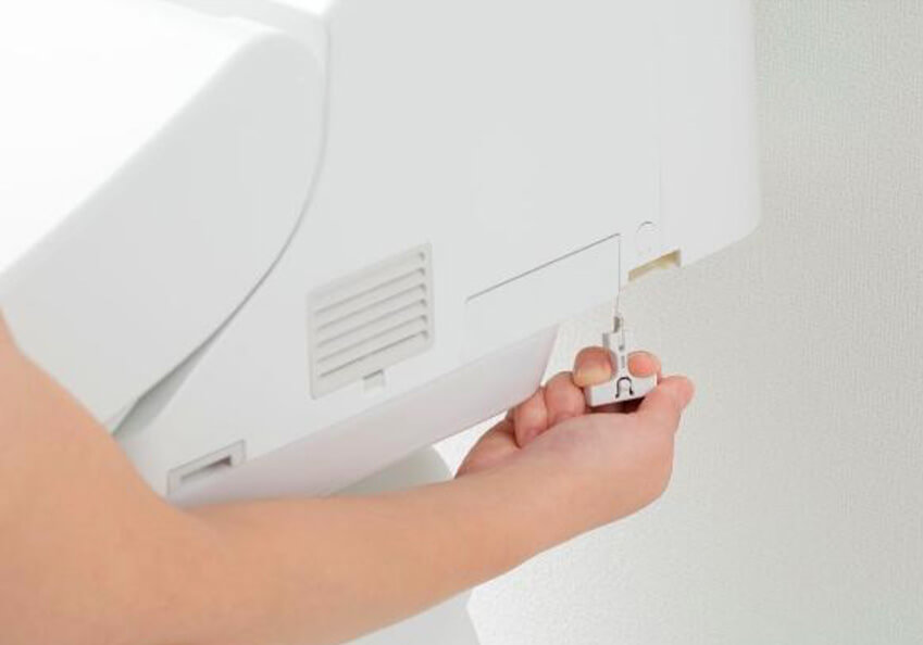 便器に向かって右横奥の手動レバーを引っ張ることで、停電時も水を流すことが出来ます。
