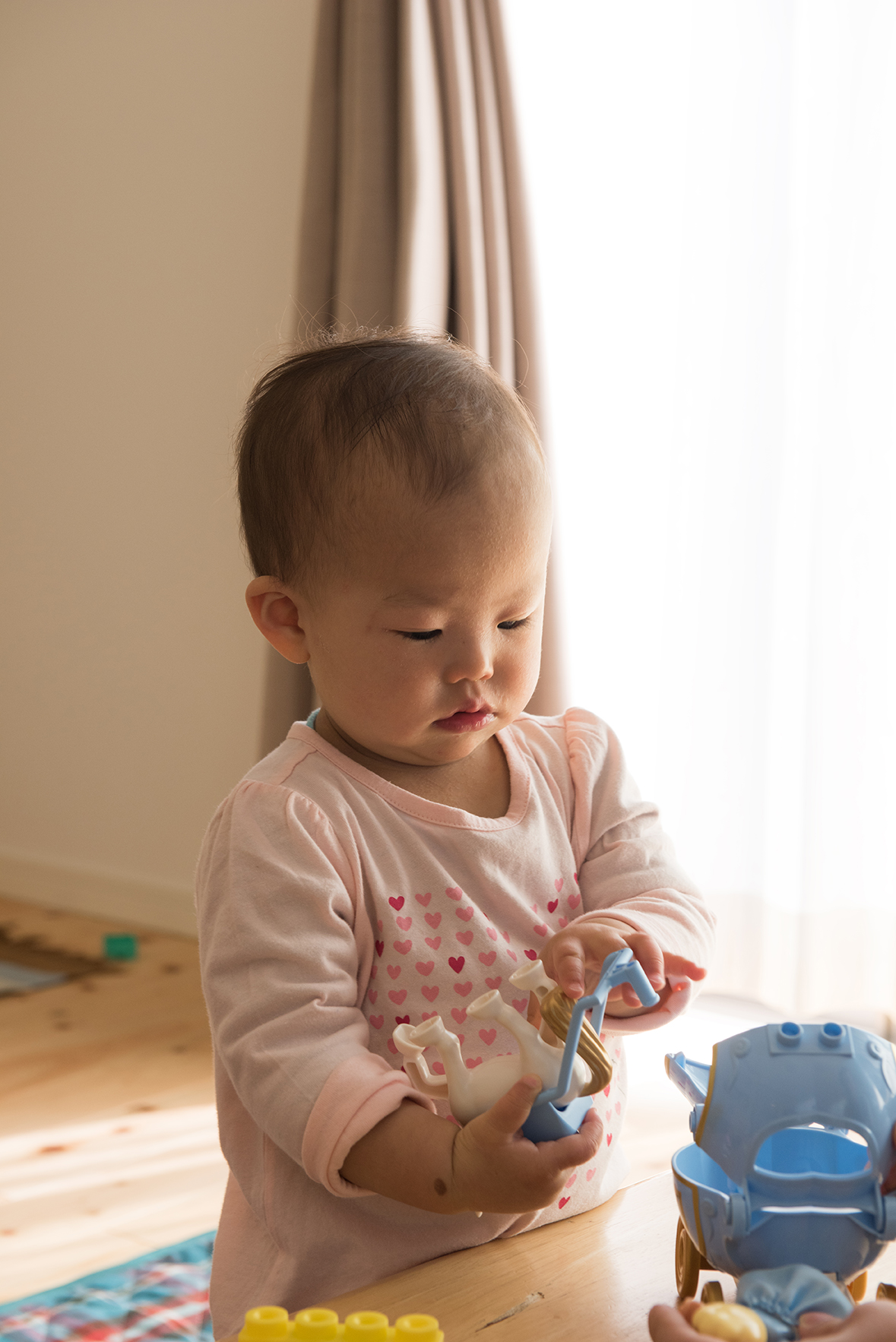 ヒノキ無垢の床材が素足でも暖かく、光を柔らかく反射