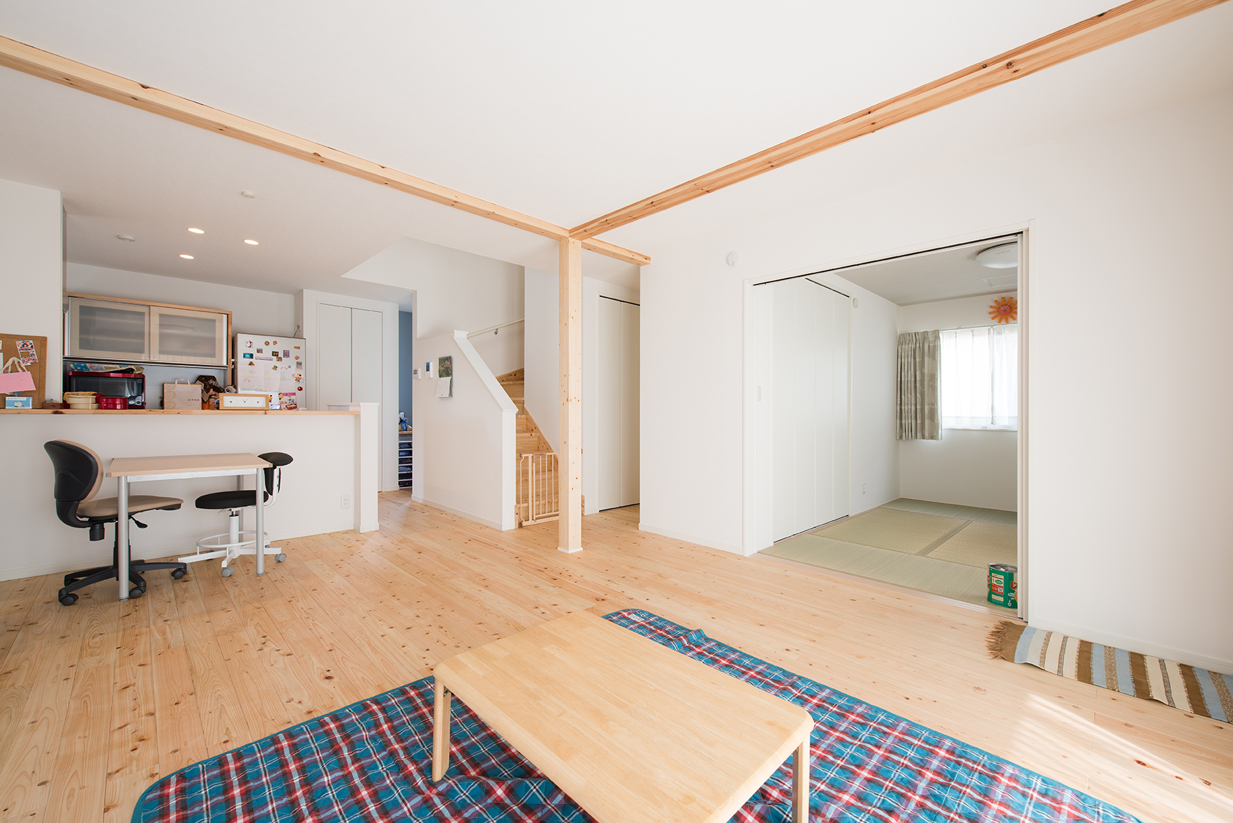 階段に吹き抜けを作ったことで子供の気配が感じられるようになったことも良かったです。