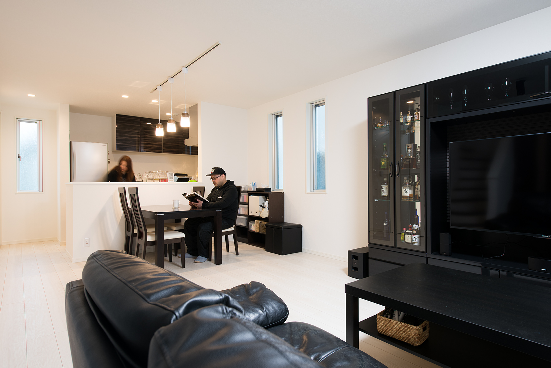 やはり黒にこだわりがありました。外観は黒く、内観は白く、インテリアに黒や濃茶を使いメリハリを出しています。
