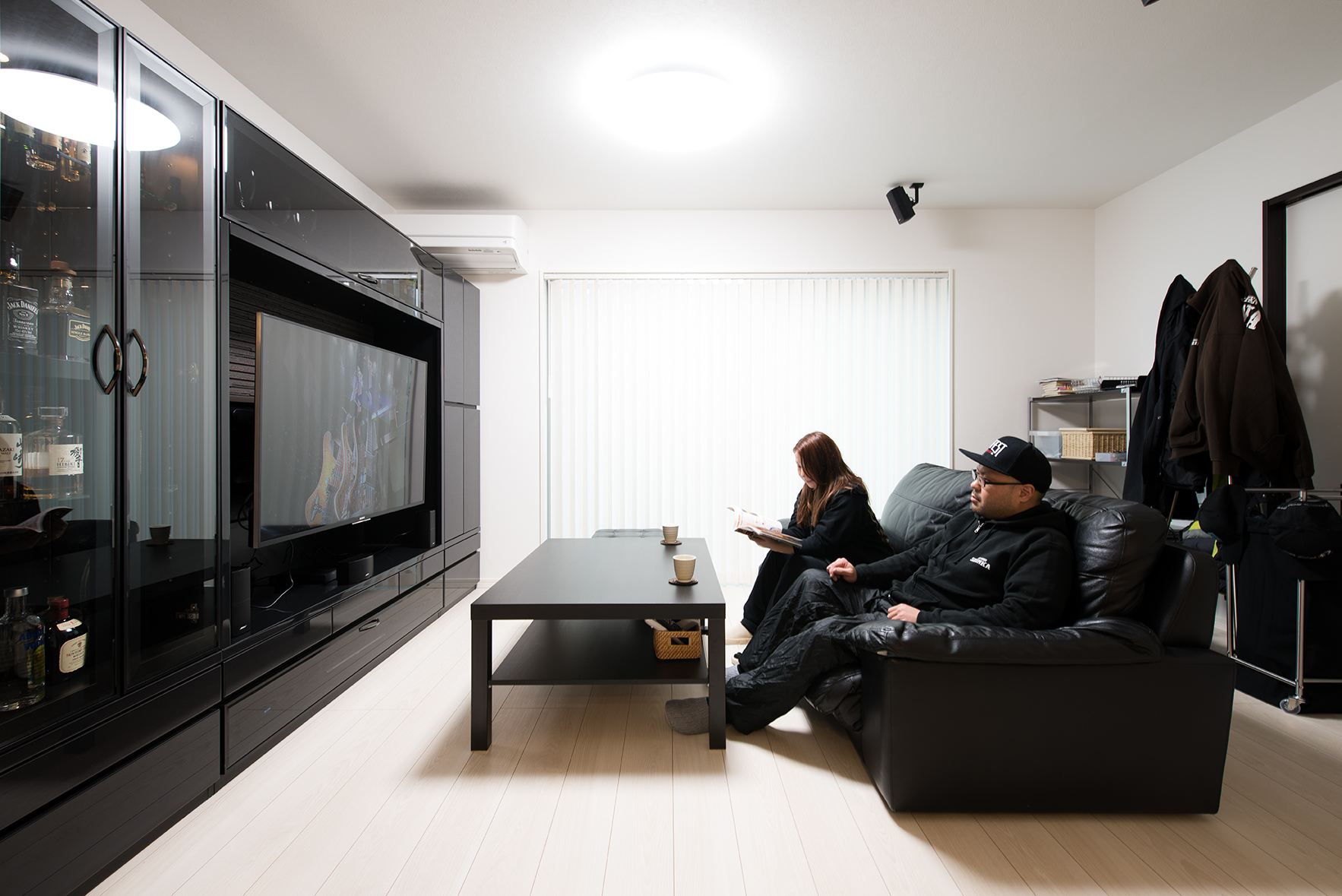 リビングにはオーディオシステムを組んでもらい、仕事が休みの時は音楽の映像などを楽しんでいます。