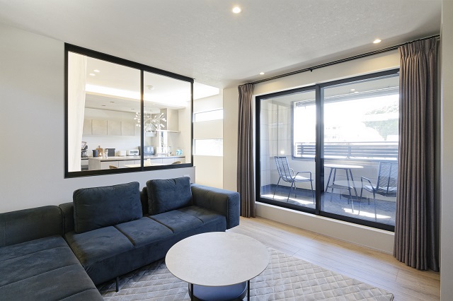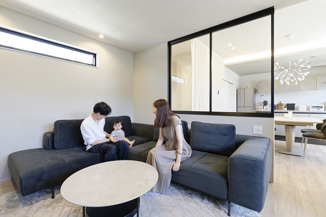 リビングとキッチンダイニングの間仕切りが便利でデザイン性も良い