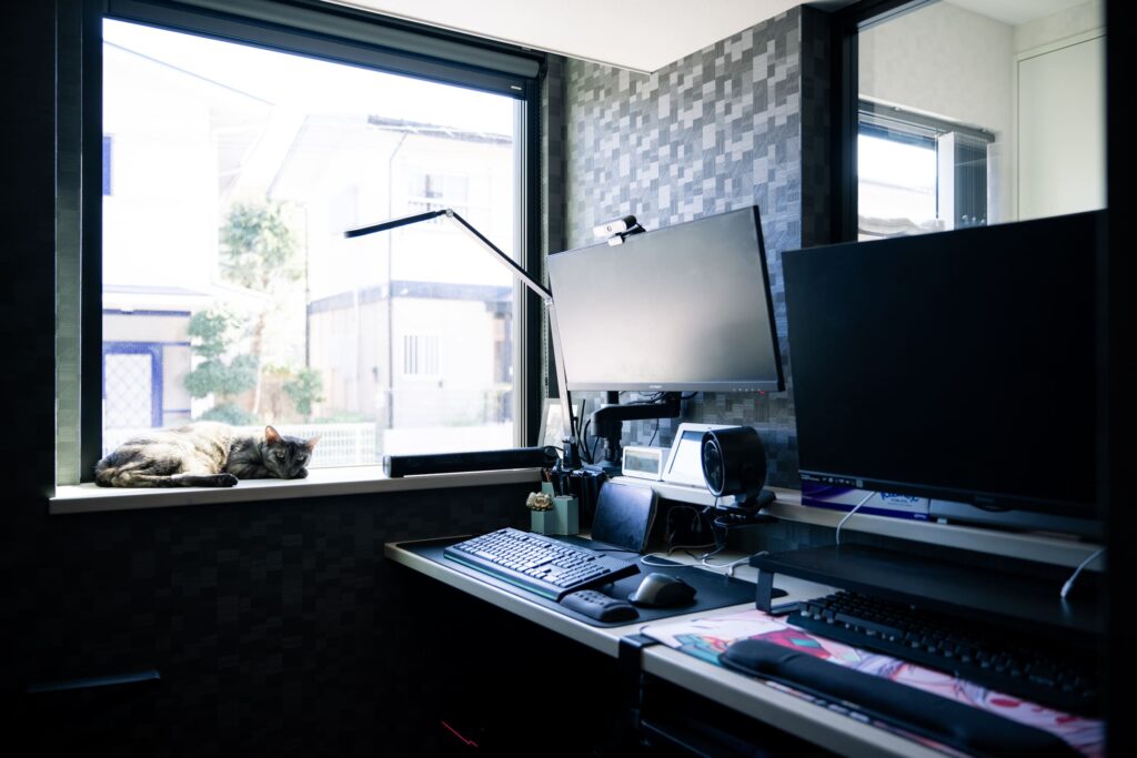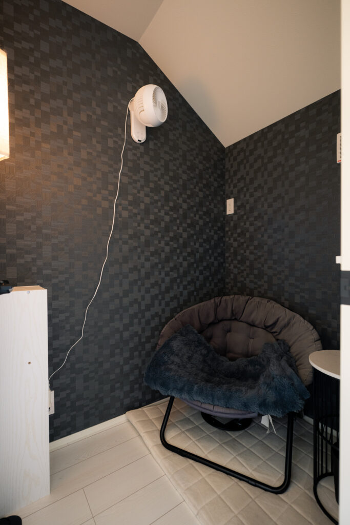 また、家族それぞれがリラックスできる「自分だけの空間」ができたことも嬉しい変化です。妻は2人で座れるワークスペースをとても気に入っていて、そこでくつろいだり窓辺で横になったりしています。私は自分専用の喫煙所が一番のお気に入りで、誰にも気を遣わず、何も考えずにホッと落ち着ける自分の時間を味わえています。もちろん、猫たちのための広さも十分に確保できたので、人間も猫も、家族全員が本当にのびのびと心地よく暮らせるようになりました。