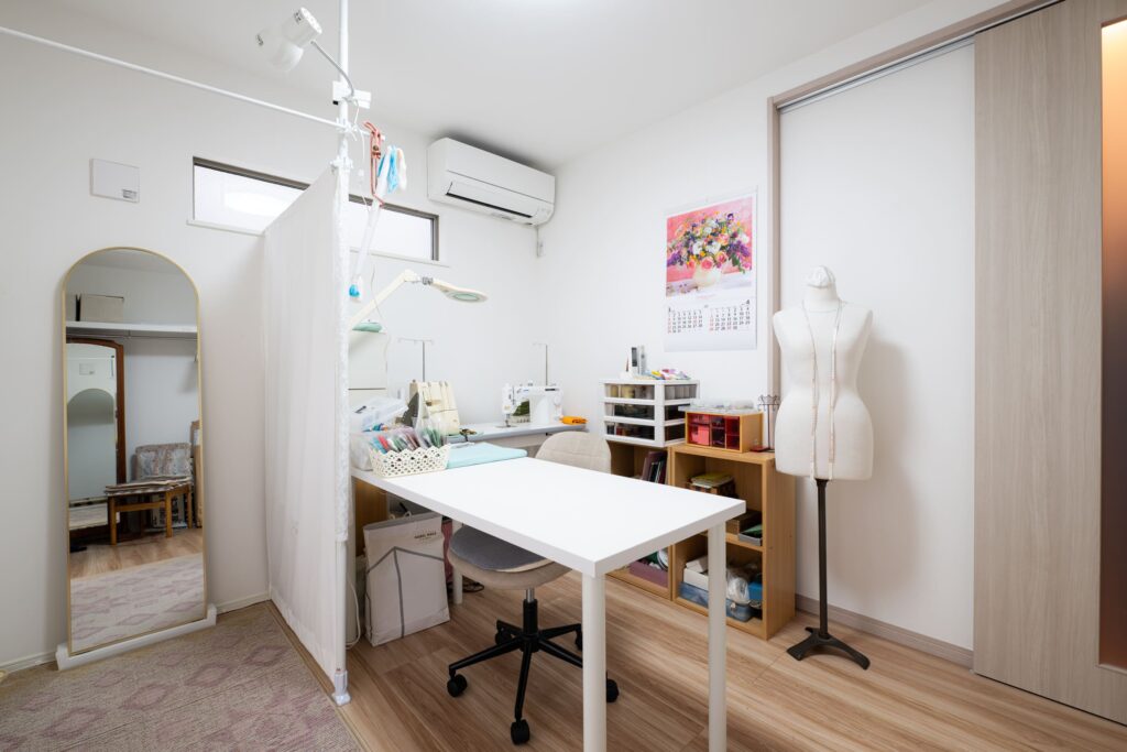 壁の色などのデザインも素敵ですし、お掃除も楽になって毎日がとても快適です。また、妻のお直しの仕事部屋も増え、快適に作業ができているみたいです。