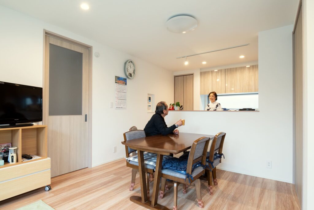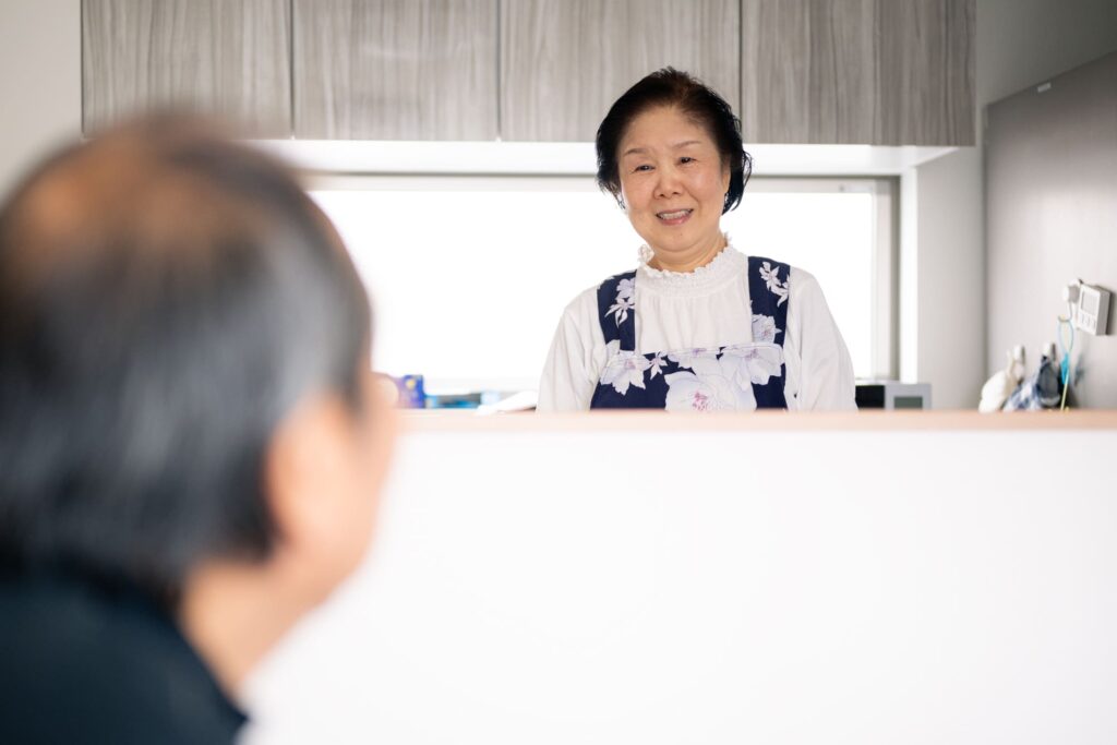 毎日使うキッチンも劇的に変わりました。何よりお掃除がすごく楽になったんです。昔のコンロは「ごとく」の掃除が本当に大変だったんですが、今の設備はサッと綺麗にできます。以前はキッチンが独立した別の部屋になっていて寒かったのですが、今はテレビも見られますし、夏は涼しく冬は暖かく過ごせるようになって、新しい設備は本当に便利だなと実感しています。