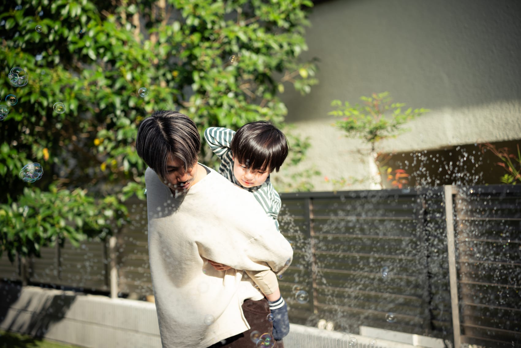 そして念願のお庭ができたことで、「もみじが綺麗だね」「今年もお花が咲いたね」と四季の変化を感じられるようになりました。夏にはすぐにお庭にプールを出して、念願だった水遊びをさせてあげられています。家が広くなったことで子どものストレスもなくなったようで、ニコニコ笑顔で遊ぶ機会がすごく増えました。家の目の前が公園というのもすごく良い環境です。家で過ごす時間が長くなり、家族みんなが自然を感じながら心穏やかに笑顔で暮らせるようになったことが、何よりも嬉しい変化ですね。